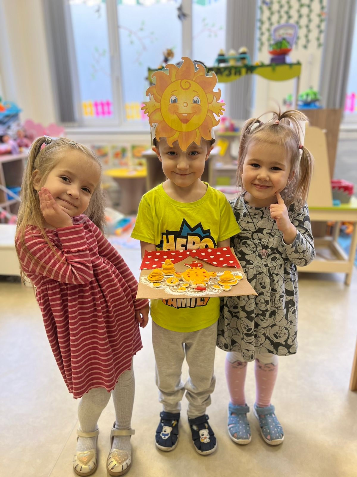 • Занятия: Дети знакомились с историей Масленицы, разучивали приветственные песни и стихи. Можно было сделать аппликации с изображением солнца (символ Масленицы) или традиционных блинов.