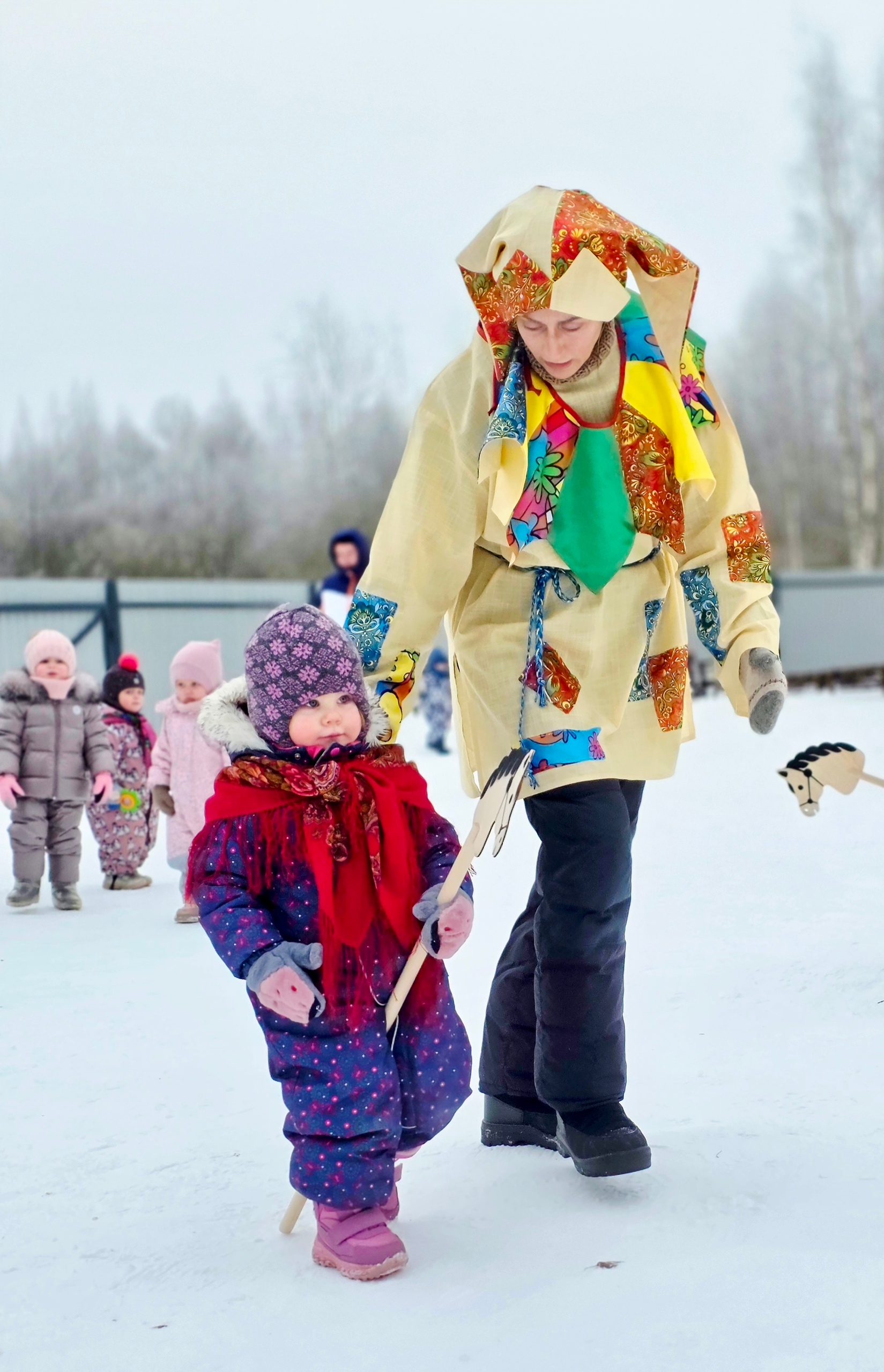 • Спектакли: Показ масленичных представлений, где главными героями были скоморохи, Зима и Весна. Дети могли сами участвовать в ролях или быть активными зрителями.